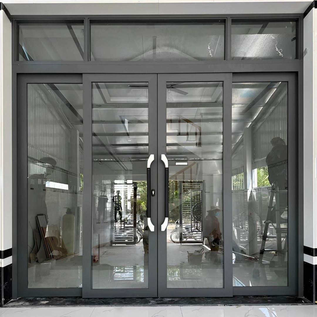 Cửa nhôm trượt quay 4 cánh màu xám ghi là sản phẩm cửa nhôm cao cấp, mang lại sự sang trọng cho công trình của bạn.